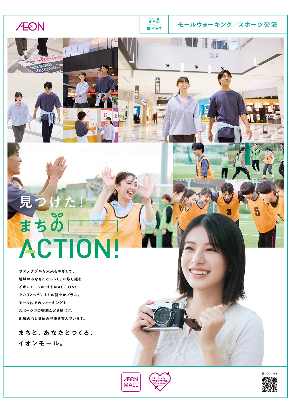 イオンモールでは、お客さまの健康的なライフスタイルをサポートするため、モール内にウォーキングコースを設定、開放しています。ポイントごとに歩いた距離や消費カロリーがひと目でわかるサインも設置。天候や時間を気にせず、安全・安心なモール内で、健康づくりをもっと気軽に。