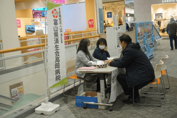 イオンモール高岡では、健康寿命の延伸と健康行動へのアクセスが地域課題でした。そこで、隣接する済生会高岡病院との協業で、週1回看護師による健康相談を実施しています。併せて、健康診断のチケットを購入して済生会高岡病院で気になる項目だけ検査できる、「ちょこっと健診販売機」も館内に設置し、気軽に健康に関する不安を解消できる環境を整えています。
