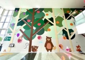 地下1FのC2/D2出入口の壁面には、森と動物をイメージしたフォトスポットを新たに設置。小さなお子さまが動物といっしょになって撮影できるポイントもあり、ご家族でお楽しみいただけます。