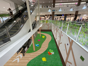 この度、新規13店舗を含む24店舗を刷新、施設面においても、館内環境の整備とともに3Fフードコートに小さなお子さまとゆったりお食事ができる小上がり席を設置し、カラフルな色合いの快適な空間へと生まれ変わります。また、地下1Fにも小さなお子さまが元気に遊べる「ひだまりパーク」を新設します。さらに、地域のお客さまとともに地産地消の再生エネルギー創出の取り組みとして、駐車場スペースを有効活用しソーラーカーポートを設置しました。