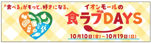 イオンモール株式会社(以下、当社)では、世界食糧デーを含む、10月10日(金)から10月19日(日)までの10日間、全国のイオンモールで『イオンモールの食ラブDAYS』を開催します。