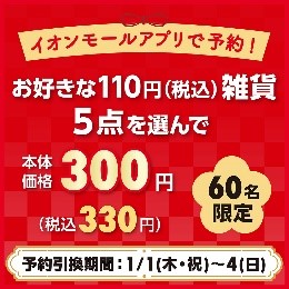 ・内 容 : イオンモールアプリからの事前予約限定で、対象店舗にてお好きな商品を複数選んで超特価でお買い求めいただけます