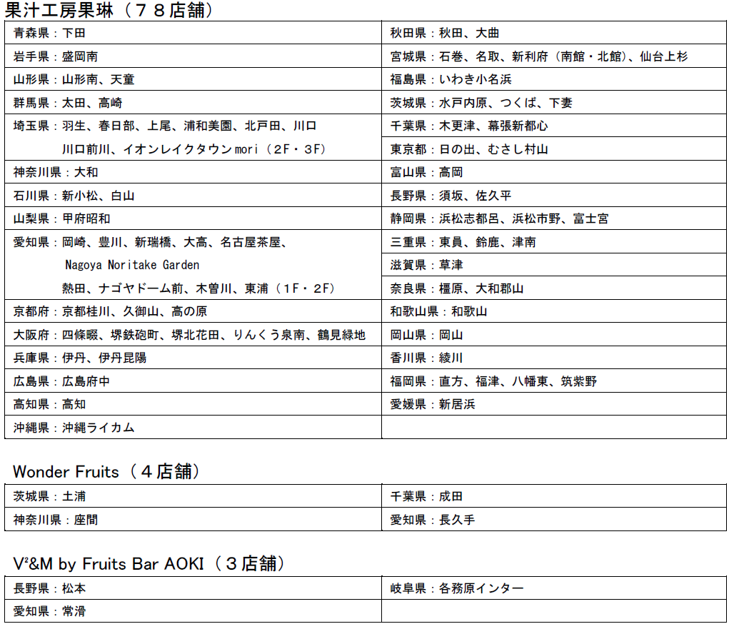 ・実 施 店 舗 : 全国の果汁工房果琳、Wonder Fruits、V²&M 85店舗 (※【実施店舗一覧】を参照)