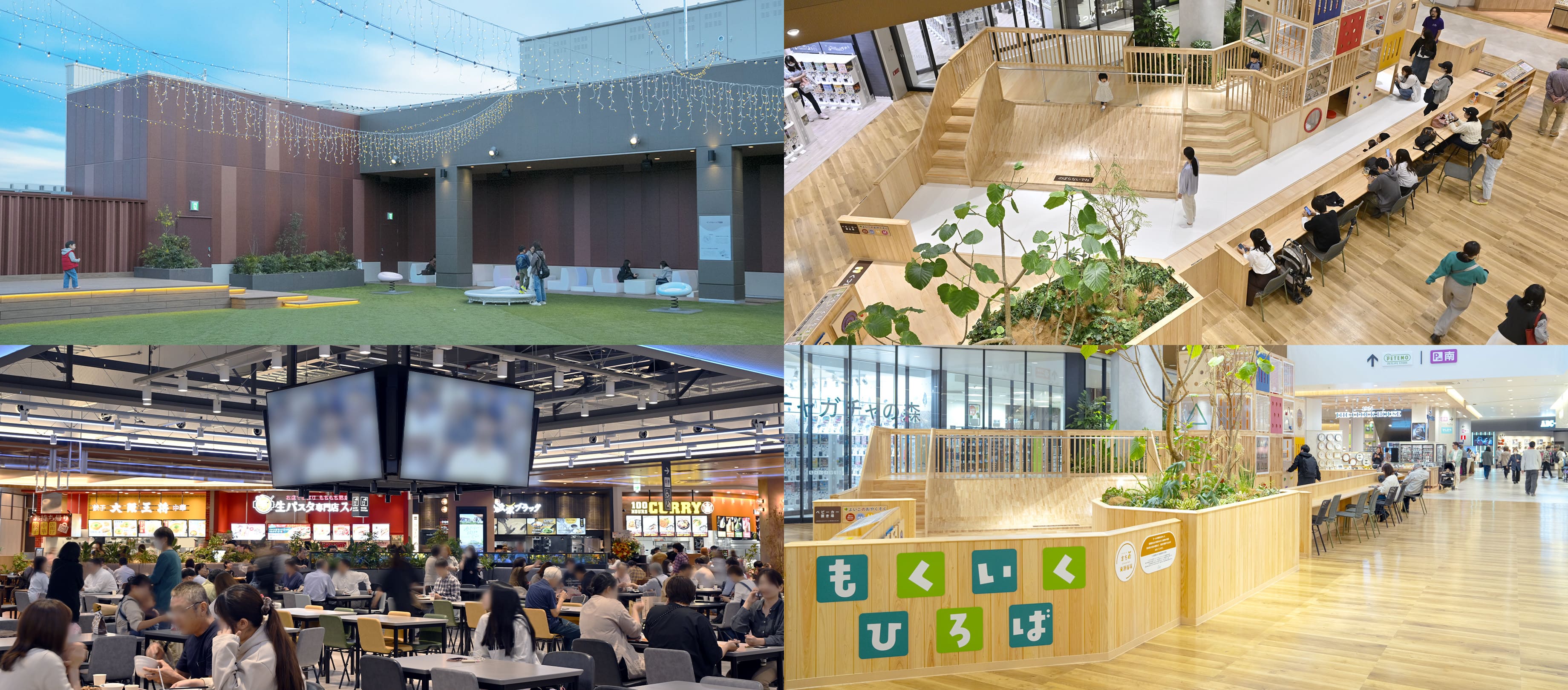- まさにその4階建という構造がポイントで、お客さまにいかに最上階の4階まで足を運んでいただくかを考え抜きました。たとえば、企画段階で最上階について、施設の目玉となるような開放的な空間環境をつくる構想があり、それを具現化するにあたり、構造や意匠について設計者と何度も意見を交わしました。最上階という特性をフルに活かし、モール通路の天井高は約8mと高くし採光窓を設け、室内緑化にも力を入れ、明るく開放的で潤いある空間としました。また隣接するフードコートも、客席エリアに柱の無い構造設計とし、見通しの良い空間をつくり出しました。この4階の設計については、GMの寺川さんともいろいろアイデアを出し合いましたね。